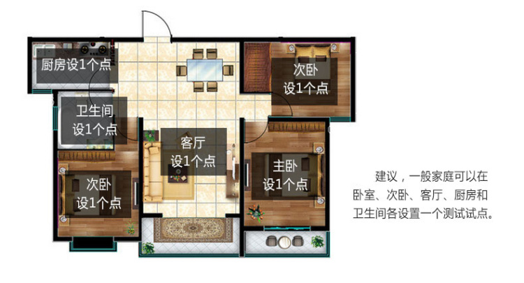 3房1廳 90 M2-110 M2 甲醛、苯、TVOC、氨 700 檢測4個獨立空間