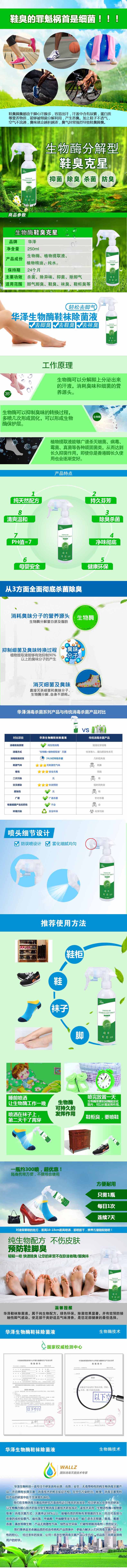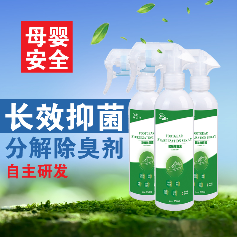 wallz 鞋襪除菌液,利用專(zhuān)用生物酶及植物提取液降解汗液、廣譜殺滅細(xì)菌、病毒、霉菌、真菌等各種頑固細(xì)菌,并抑制產(chǎn)生臭味的微生物生長(zhǎng)。本產(chǎn)品只含有純天然生物活性物質(zhì),高效殺菌,持久祛味,綠色環(huán)保,除菌效果顯著,并有效預(yù)防接觸性腳氣感染,使足部干爽舒適且氣味清香,是您足部健康的最佳選擇。